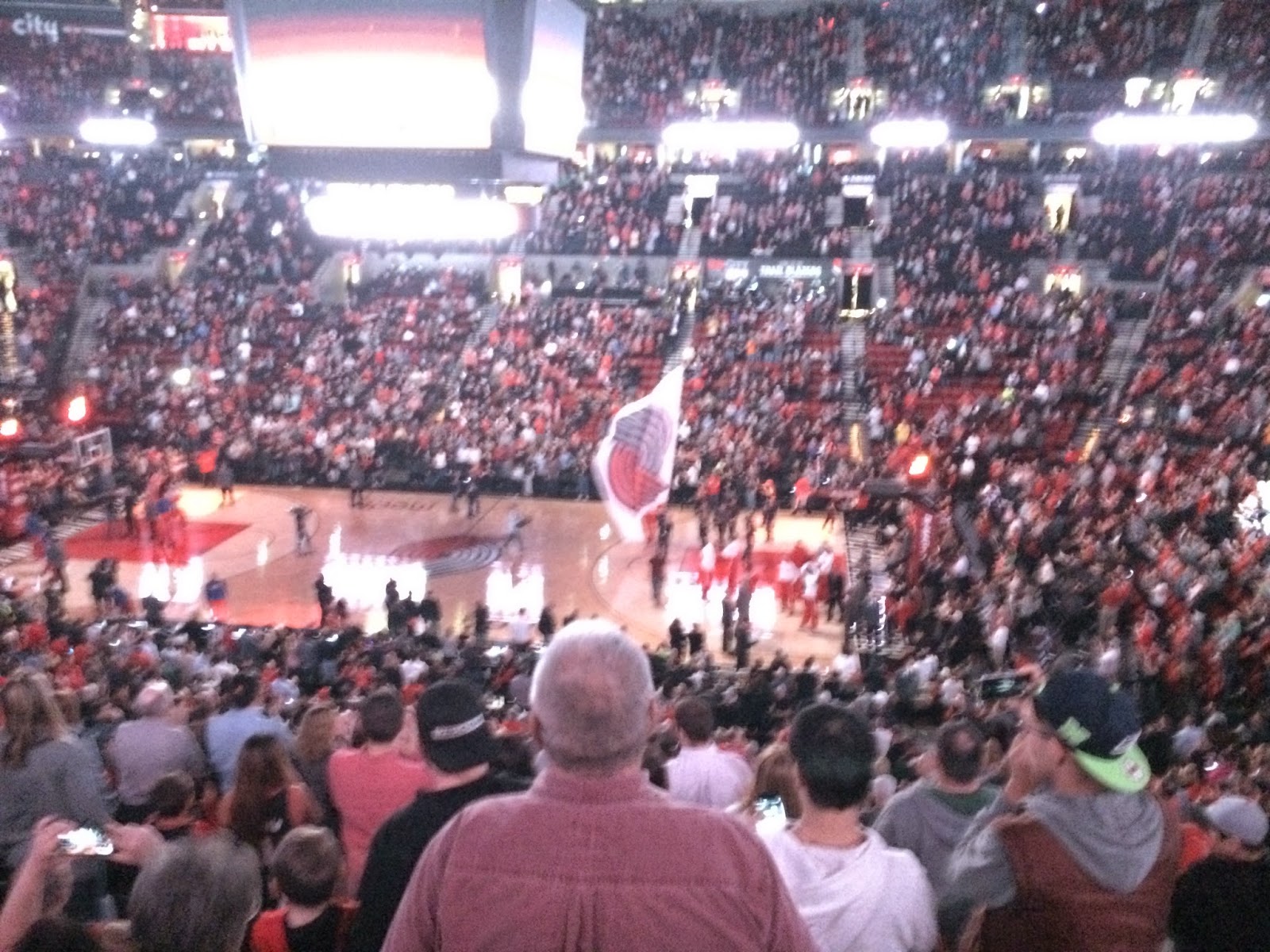 RIP freaking City! While I love everything Washington and all Washington sports, basketball is in a league of it's on. And it's PORTLAND basketball at that. I was never a Sonics fan, nor will I ever be a whatever basketball team eventually comes to Seattle fan. Vancouver, Washington is a rock's throw away from Portland. I was raised a Blazer Believer. My entire family- and I mean my extended family too- is full of Blazer Believers. My cousin was a Blazer dancer for years! Blazer blood runs in my veins, so needless to say, whenever I'm home and the Blazers are playing....you can bet I'll be at the Rose Garden (or Moda Center, but it will always be the Rose Garden to me). When we went to Denver, we saw the Nuggets play the Blazers and in Dallas we saw a Mavs/Blazers playoff game (courtesy of my Blazer Dancer cousin!). We left Jellybean with Lola and off we went for a really run date night watching the best basketball team in the country. I love Blazer games in Portland. It's really all Portland has! So the fans go crazy and are on a whole different level of loyal.